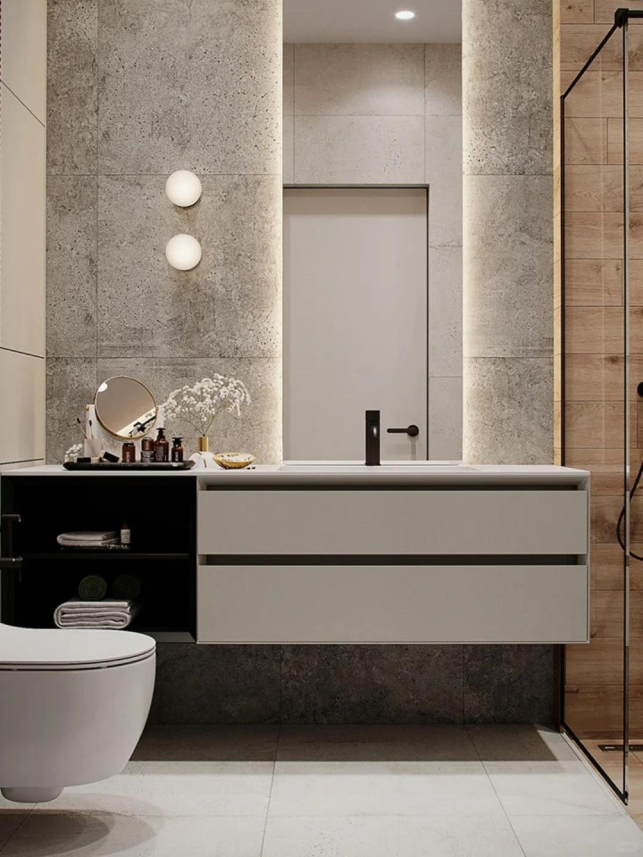 壁挂式马桶+矮墙设计不仅没有卫生死角,上方矮墙还能做成收纳台,放卫生纸和装饰品